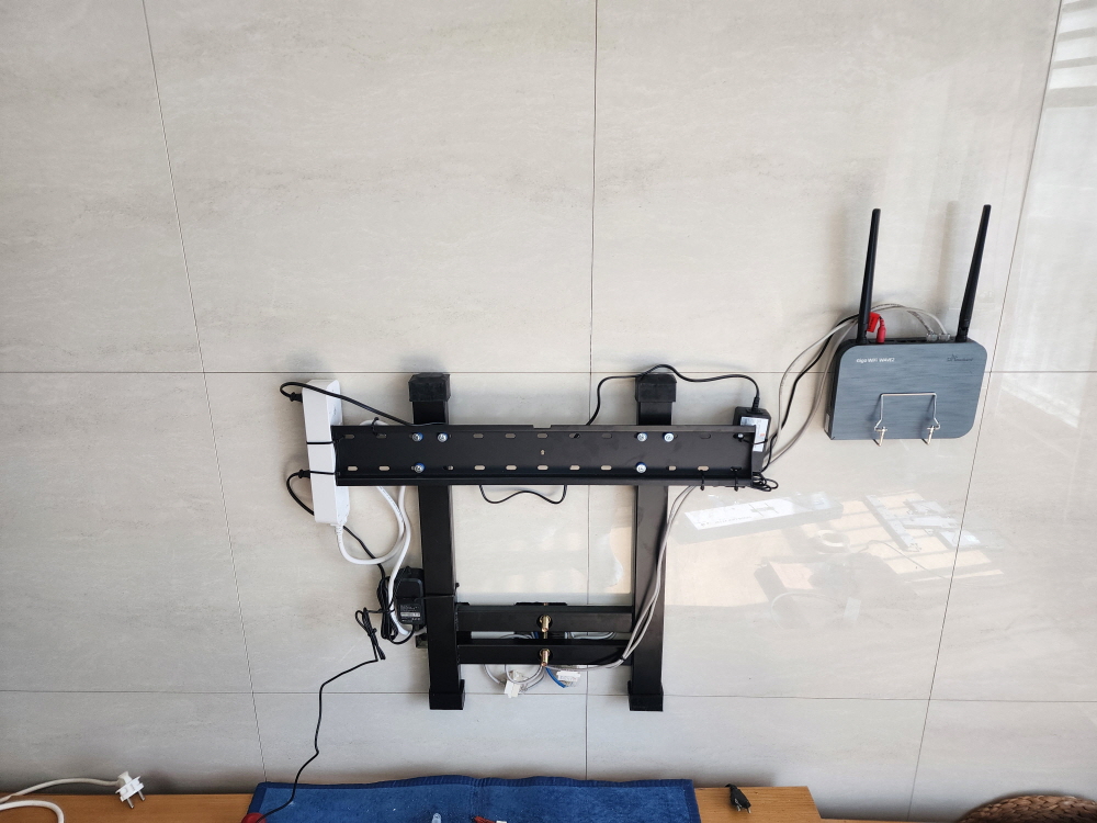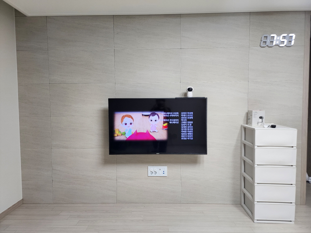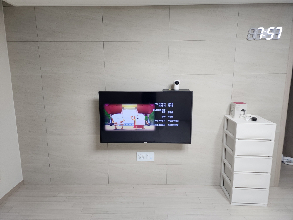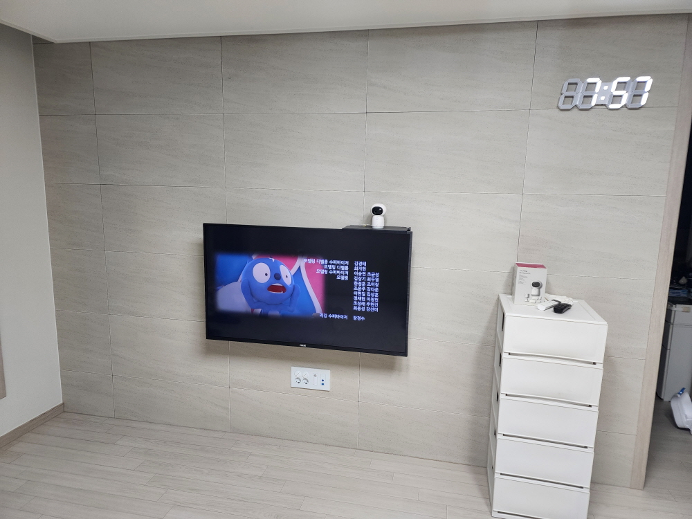 밀양벽걸이티비설치 TV설치되어있을때셋탑박스공유기TV선숨김정리 울산벽걸이티비설치 안방 반매립벽걸이티비설치 상하좌우각도브라켓사용 이동형스탠드티비거치대조립및셋탑박스정리 작업사진