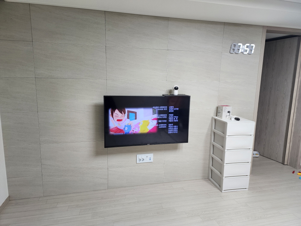부산벽걸이티비설치 부산무타공벽걸이티비설치 부산타공벽걸이티비설치 해운대 티비설치되어있을때 셋탑박스공유기모뎀정리TV선정리 타일벽타공설치 셋탑박스공유기정