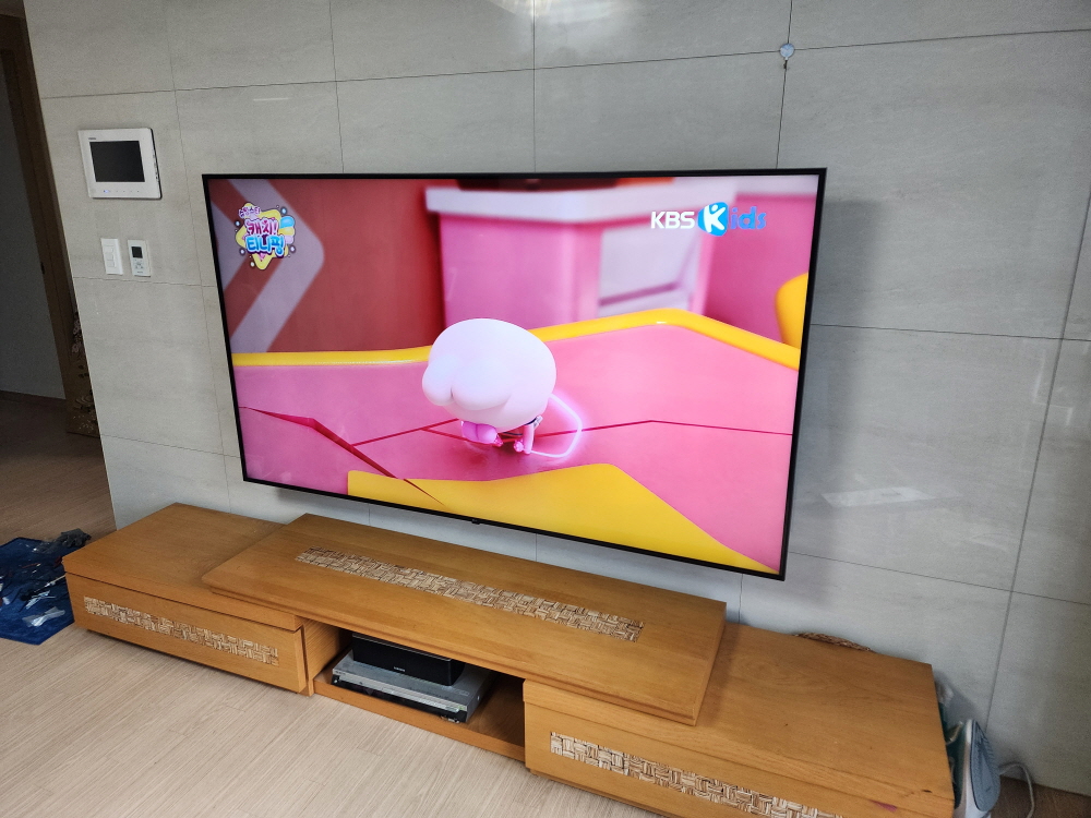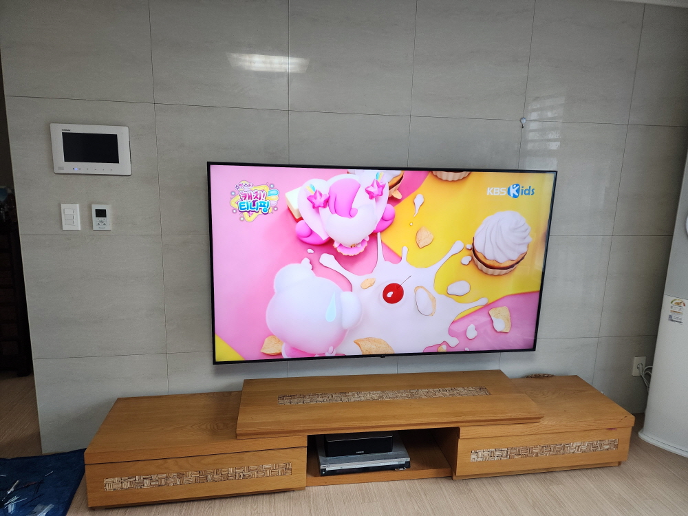 부산벽걸이티비설치 남구대연동 75인치타공벽걸이TV설치 셋탑박스공유기멀티탭숨김정리 부산진구개금동 75인치TV설치되어있을때 모뎀공유기숨김정리 기가지니3거치대설치