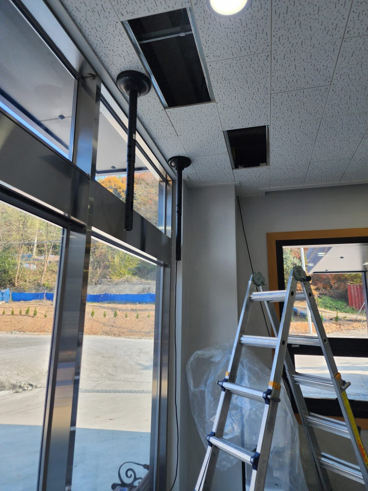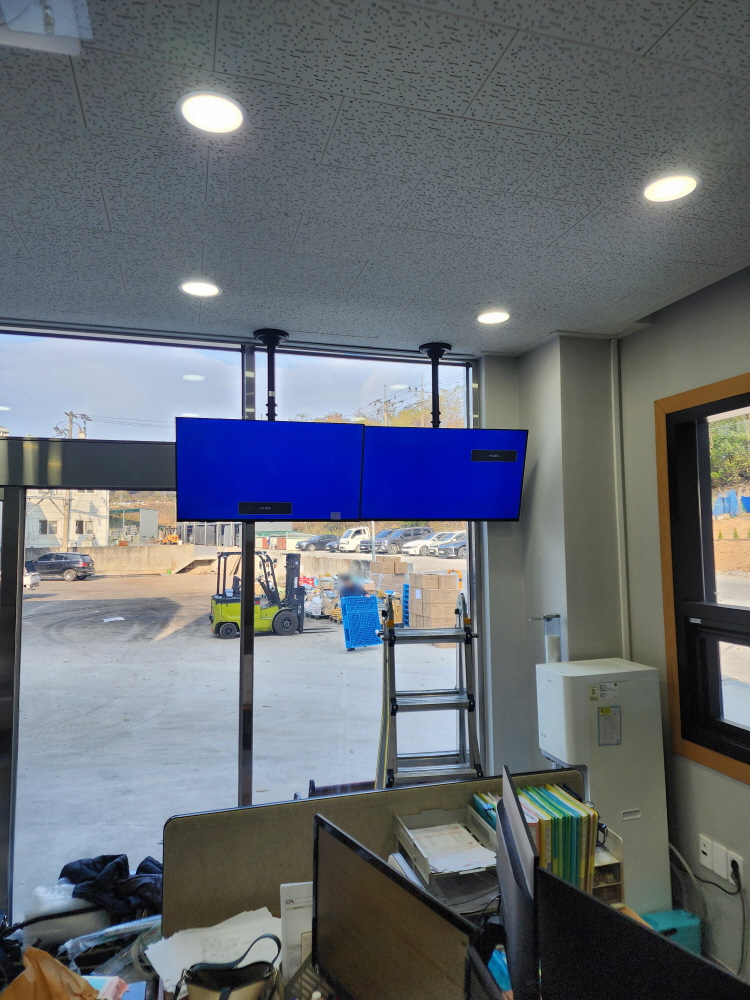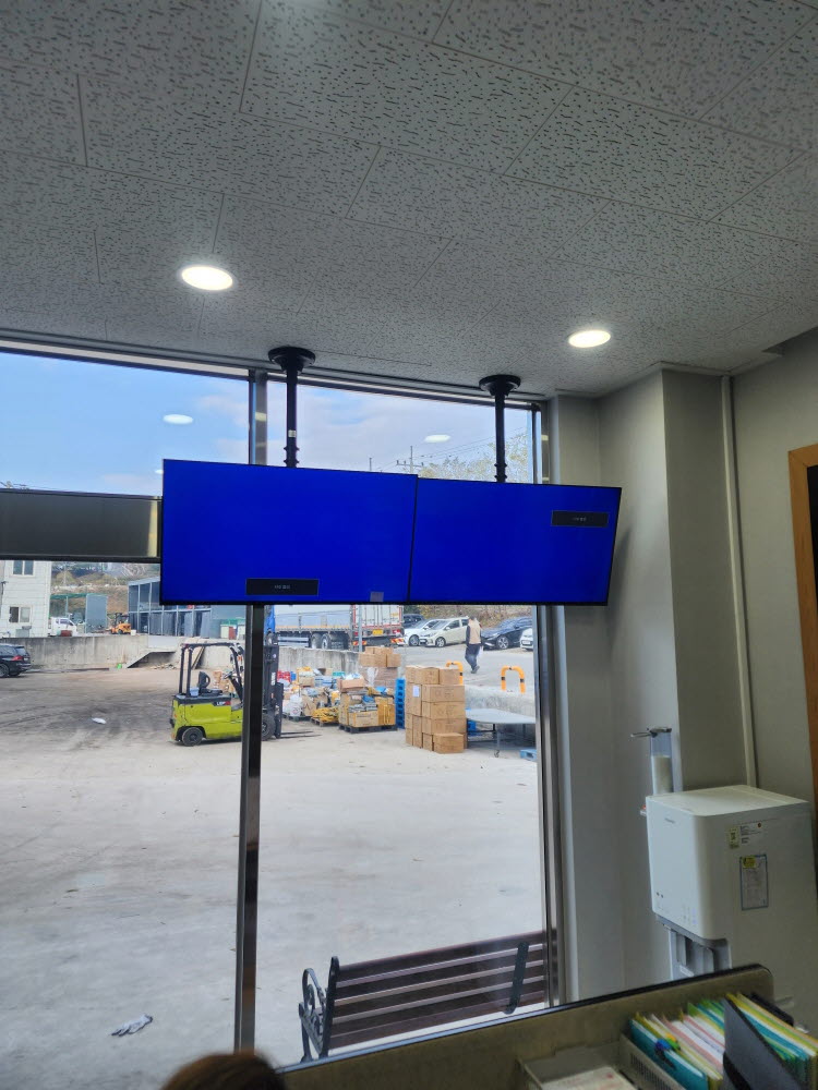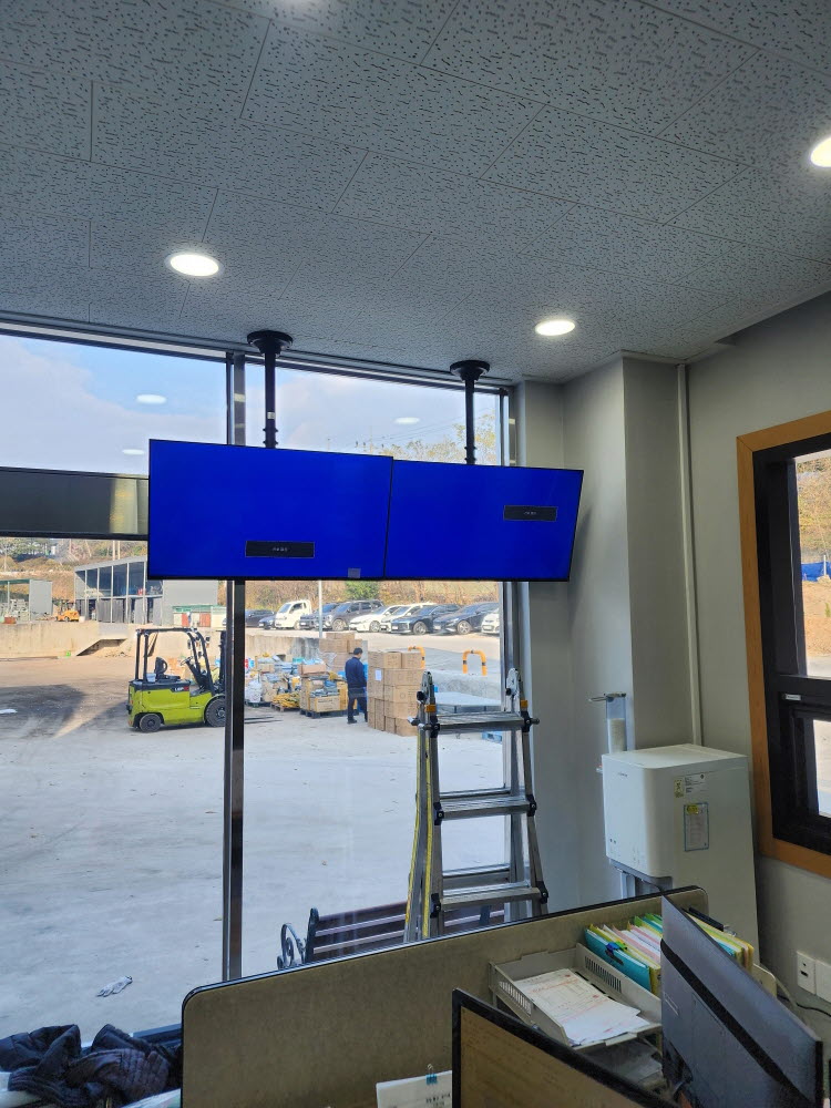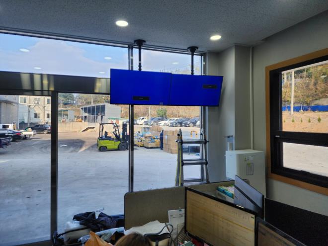 부산천장형티비설치 김해천장형티비설치 한림면 사무실 40인치TV 2대 천장티비설치 김해벽걸이티비설치 셋탑박스공유기모뎀숨김정리 스탠드티비를벽걸이티비로변경
