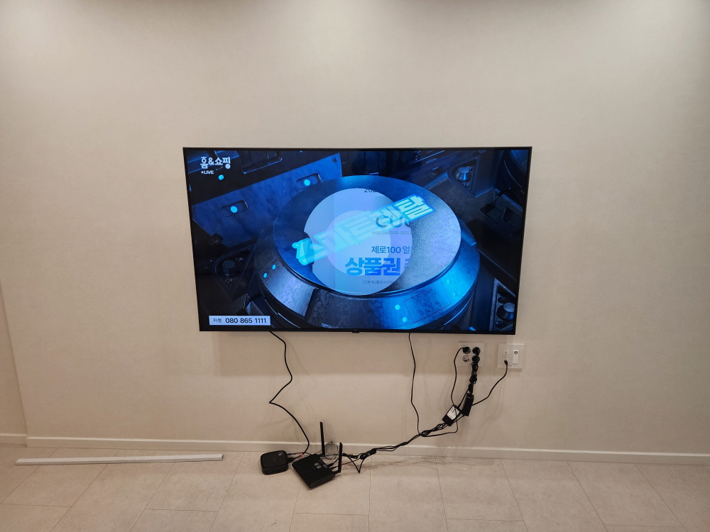 평산동 65인치티비 설치되어있을때 셋탑박스공유기티비선숨김정리